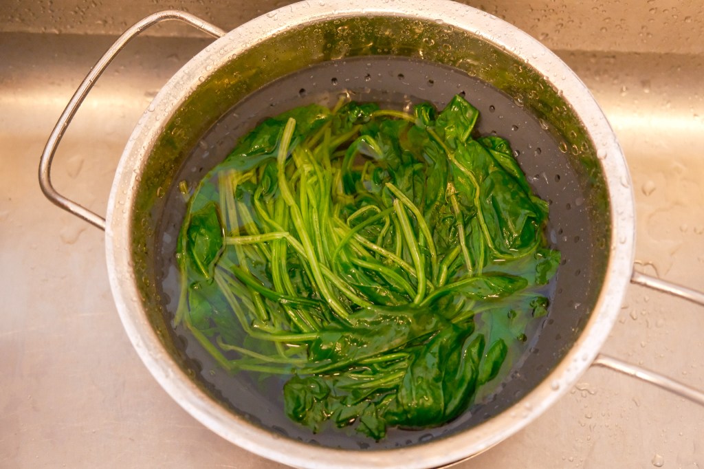 3. Immediately plunge the spinach into cold water to cool. 立即放入凉水中过凉。